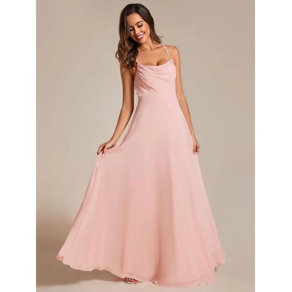 Boat Neck Empire A-line Ruffled Adjustable Spaghetti Strap Zipper Pink Chiffon Graduation Dress Images |